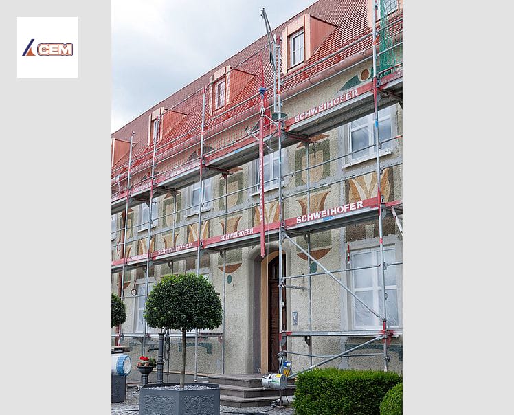 El accionamiento manual del tambor de cable no se transporta hacia arriba, sino que simplemente se fija al andamio en la parte inferior, mientras que el brazo giratorio ligero se fija en la parte superior del andamio a la altura deseada. Esto incluso permite una reubicación rápida y sencilla de los polipastos de cable durante las diferentes fases de construcción.